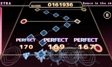 1.在音乐的律动下,按照提示点击、滑动、触摸等操作完成节奏游戏挑战,获取高分。