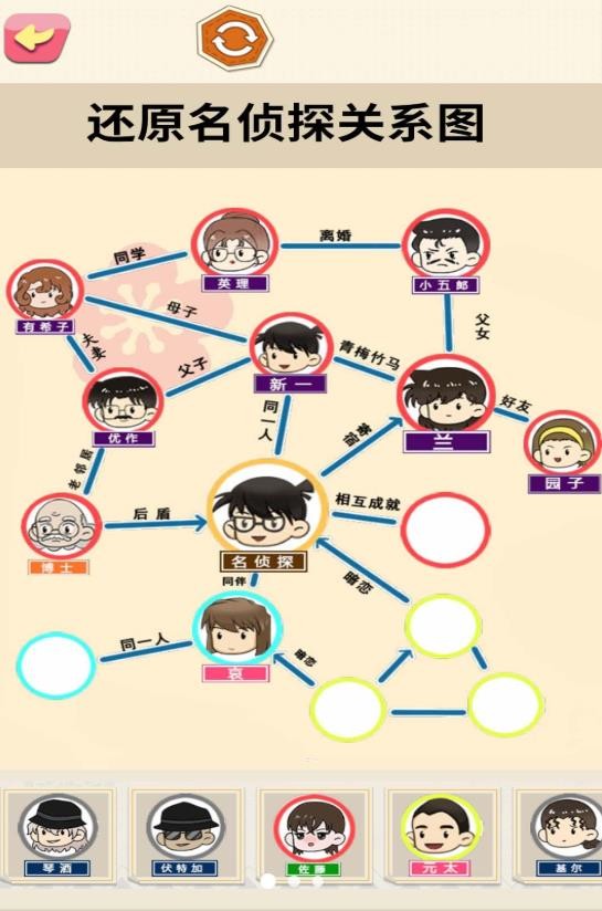 还原关系连线游戏是一款休闲解密闯关手机游戏,在还原关系连线游戏内了解不角色的人物关系,开启我们正确的连接,探索不同的章节关卡,自由的开启我们的连线之旅,丰富的游戏角色内容,还原我们的原著,成功的完成各项我们的挑战!