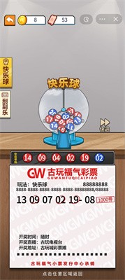 快乐球:选择5个红色号码和1个蓝色号码,即可转动快乐球进行抽奖,最高可得50万奖券!刮刮乐:刮开对应号码等于中奖号码,即可获得右侧对应奖券数量,最高可得50万奖券