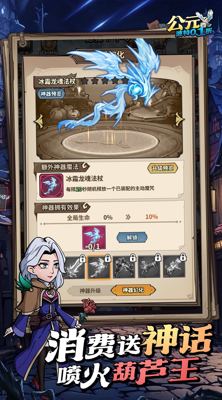 公元(魔法波特内置0.1折)是一款西方魔幻系列的冒险战斗手游,在公元魔法波特内置0.1折手游中,玩家上线就送VIP5,还有百连抽、真仙七星宝箱,在线指定时间后还可以获得绝世法宝箱、绝世仙侠箱、初级充值礼包等,冲级送冲级送雷金,千万金币