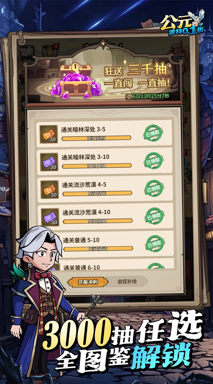 2、闯关领取3000抽,魔咒伙伴抽不停
