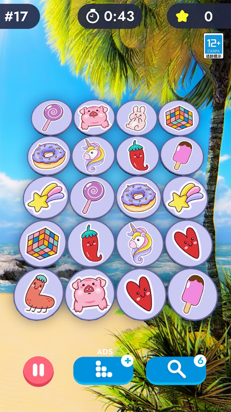 快乐连连看是一款轻松愉快的益智游戏,将您带入美丽的沙滩世界,通过连连看的方式挑战不同的关卡。在快乐连连看中,您将欣赏到美丽的沙滩风景,锻炼您的观察力和记忆力,同时享受一场别开生面的海滨冒险。