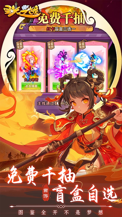 1、千抽盲盒:通关主线免费千抽,红卡盲盒三选一!