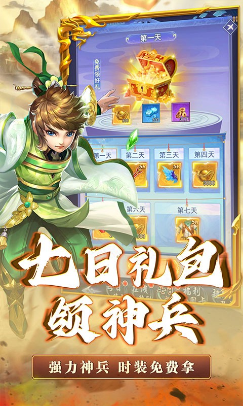 1.七日礼包得超强神兵、豪华羽翼,稀有时装免费拿