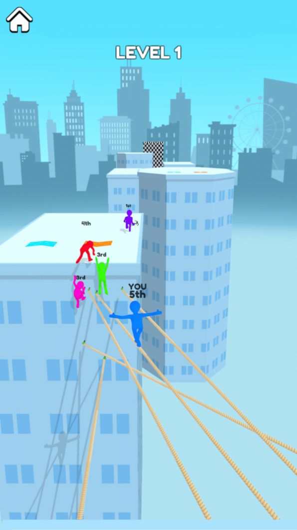 1、游戏玩法相对简单,向目标冲刺并使用绳钩快速跑动;