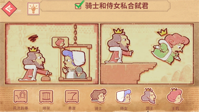 1.根据每个关卡的故事主题进行故事的编辑,将相应的场景和人物放置在合适的位置,达成关卡目标。