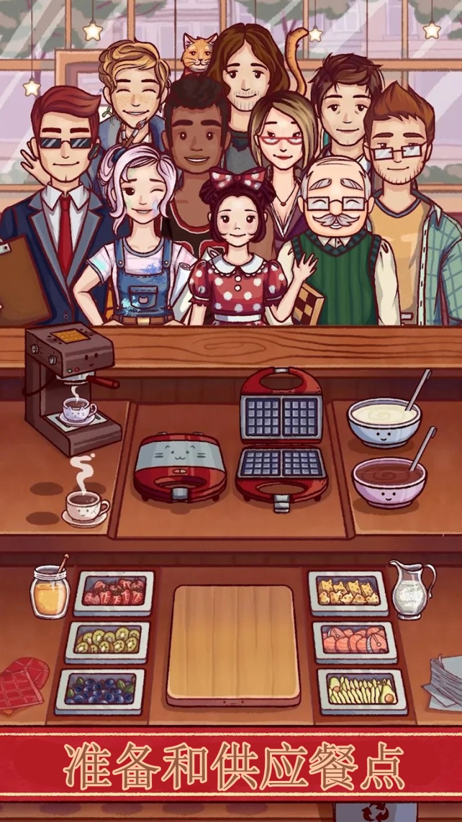 1.玩家将扮演一名创业者,在小镇中开设自己的咖啡和美食店,感受一系列有趣的游戏玩法。