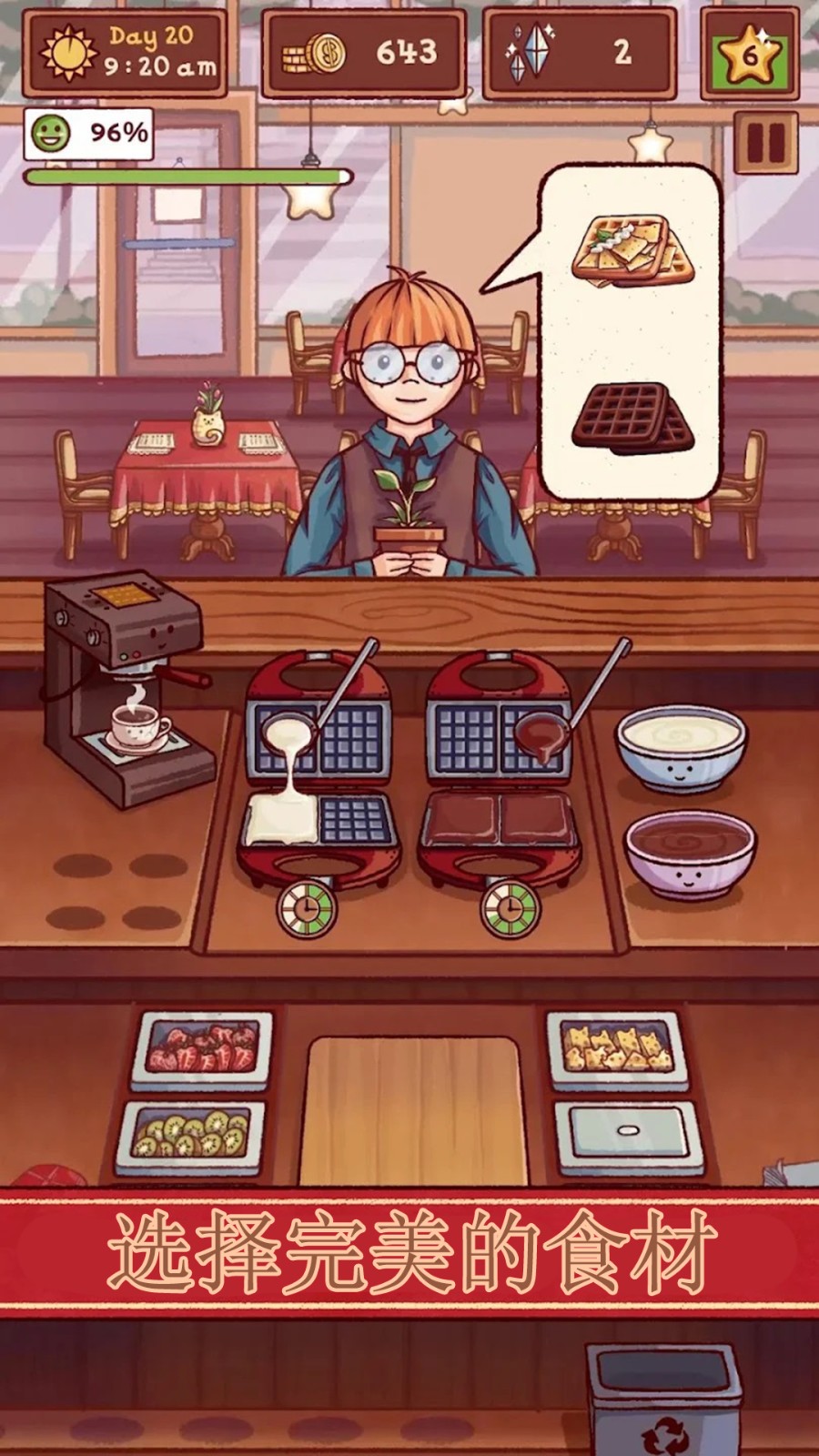 2.你可以自由布置店铺,选择装饰、菜单和服务,打造出属于你的特色店铺,吸引更多顾客。