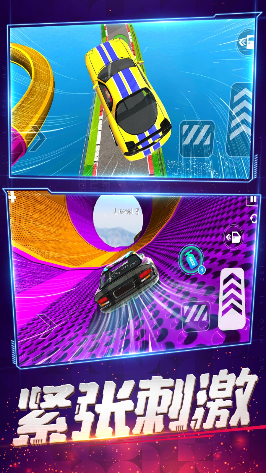 2.你可以自定义赛车的外观,选择不同的涂装、轮毂、车身套件等,打造独一无二的特技赛车。