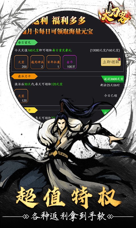 大刀客送神秘五星飞将是一款三国策略卡牌手游,在大刀客送神秘五星飞将中,玩家每天上线都能领取豪礼,超值特权和豪华返利拿到手软,累计八日登录还有额外豪礼相送,玩家上线送五星飞将助力开局无压力