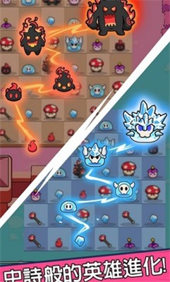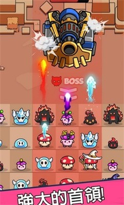 2.将蘑菇战士自动放置在地图上,无需手动操作,相同的蘑菇可以三消合并,升级变强,轻松完成更多危险的挑战。