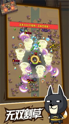 2.在不同的场景中进行割草挑战,击败来袭的敌人,获得经验不断升级,选择不同的技能,尝试各种战术流派。