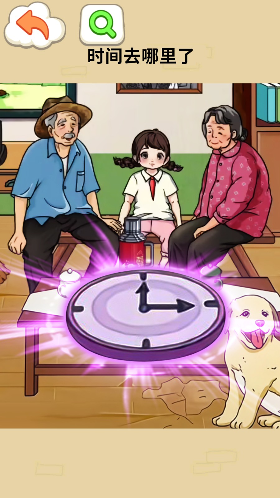 在游戏中你可以将时间机器拖到各种物品上,观察它们的变化,你会发现桌子瞬间变了,小狗也变老了,时间无情,珍惜眼前的人。