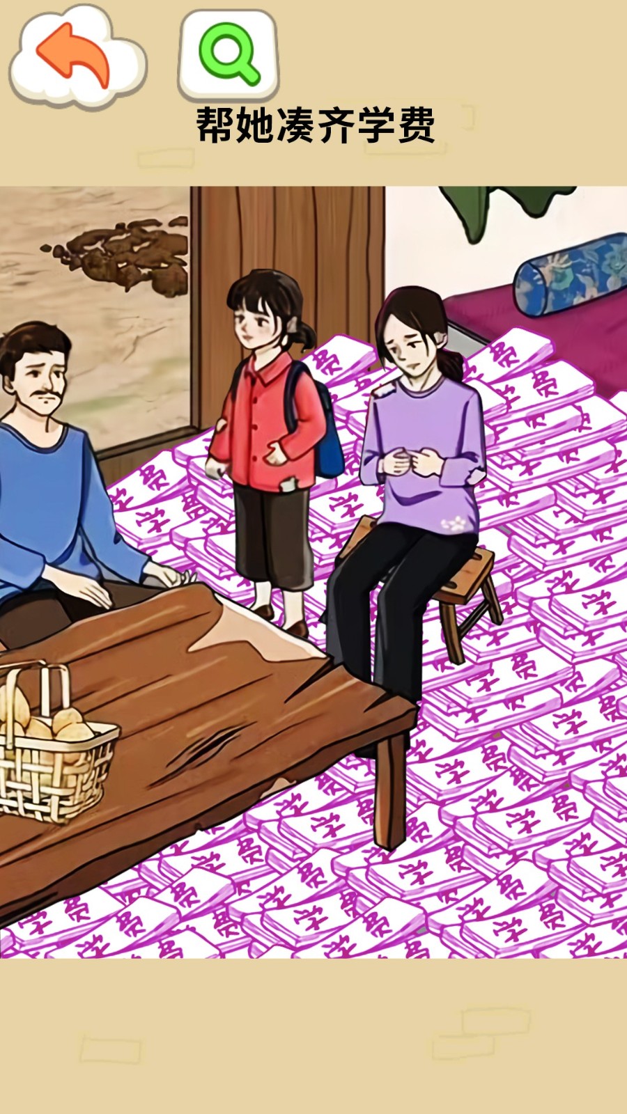 2.最后,把父亲拖到门口借钱,即可过关。