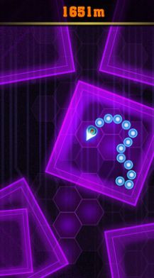 3.游戏色彩设计采用了黑色背景与荧光效果的阻碍和球球,感觉更炫酷。