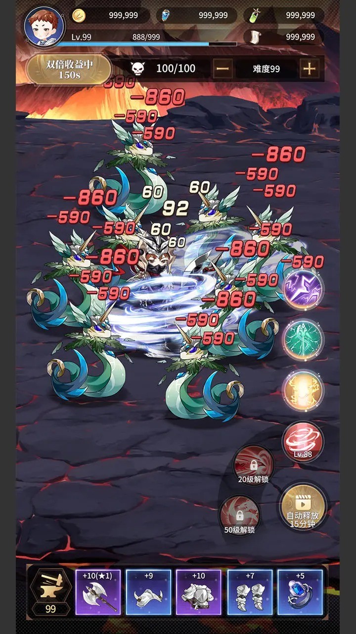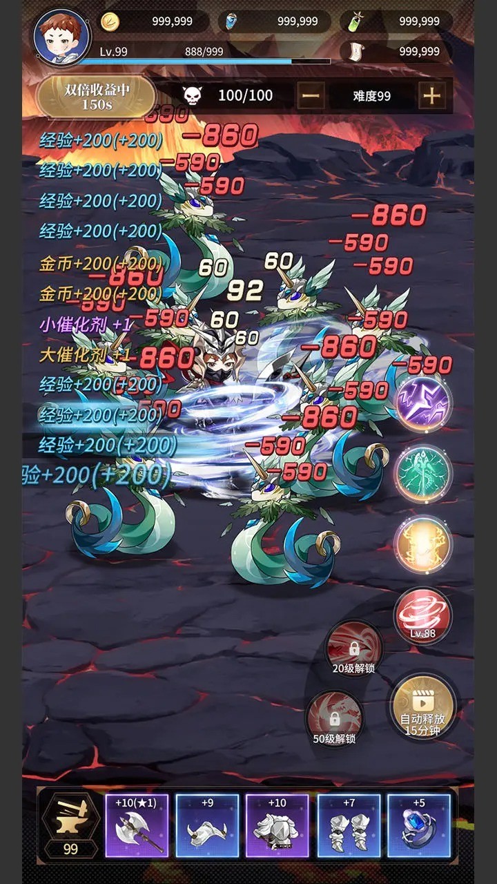 1.不断击败怪物,玩家可以获得经验和丰富的战利品,提升角色等级和装备,刷怪的时候更加得心应手。