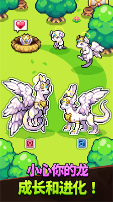 像素风rpg收集小游戏,收集不同种类的龙族,自由选择培育,解锁更多特殊种族,让你感受愉快的收集过程。