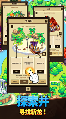 1.前往各个区域进行探索冒险,收集更多新种类的龙,将不同种类的龙进行培育,繁育出更多特殊种类,点亮相应图鉴。