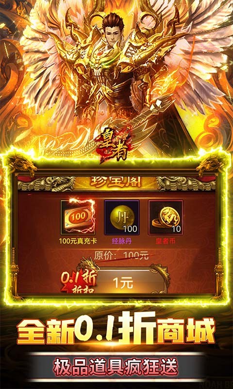 经典挂机传奇《皇者》是款深受百万玩家喜爱的高爆高福利游戏!上线送满vip15,百万元宝,绝版时装套!游戏内新增代金卷,可用于RMB进行抵扣,无需任何真实充值!绝对白嫖福利版本、全部免费无限送!福利全新升级,千倍投资,永久年卡超值豪礼领不停!同时带来全新玩法---亚特兰蒂斯,深海巨兽夺取海神神器,即可制衡新世界秩序,空间之门即将打开,迎来新的腥风血海!快唤回曾经的兄弟们一起战斗吧!荣耀归来,再创传奇!