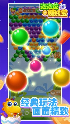 泡泡龙赚钱宝是一款泡泡龙消除闯关领红包游戏,经典消除玩法,趣味挑战等你来解锁,完成一系列任务,获得更加丰厚的红包奖励。在泡泡龙赚钱宝中,各种关卡随心选择,趣味消除,轻轻松松赚零花。