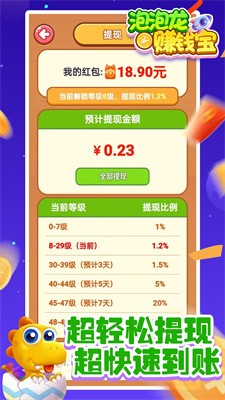 1.泡泡龙消除闯关领红包游戏,操作简单易学,轻松上手,老少皆宜,完成任务领红包,轻松赚零花。