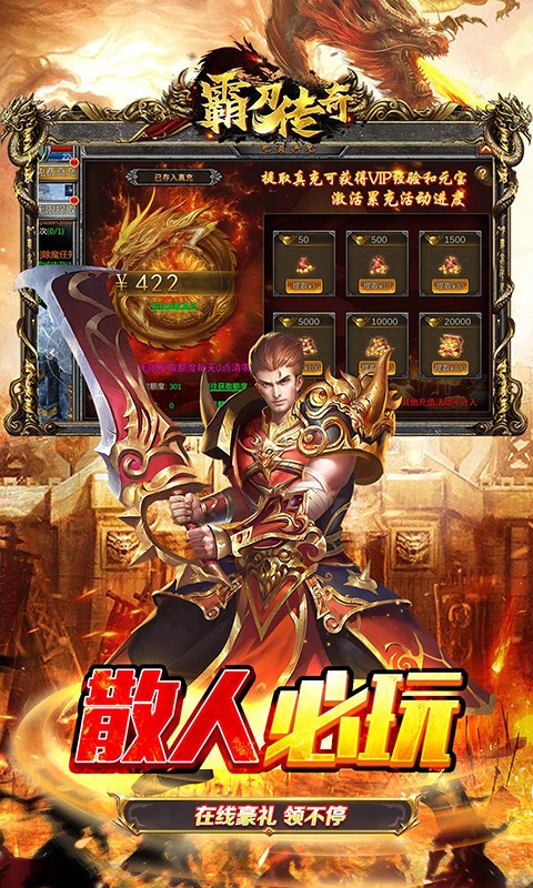 霸刀传奇0.1折无限提充是一款高爆三职业复古传奇手游,在霸刀传奇0.1折无限提充中,玩家上线就送VIP7和海量元宝和金币,零氪还有免费真充无限提充,在线就送等级直升丹,打怪还爆真充卡,散人必玩
