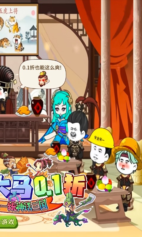 萌将争锋0.1折神话三国是一款Q版三国策略手游,在萌将争锋0.1折神话三国中,采用Q版人物、结合魔性剧情打造爆笑玩法,玩家上线还能领取648元充值、顶级SS关羽碎片等奖励,每天签到都能领充值