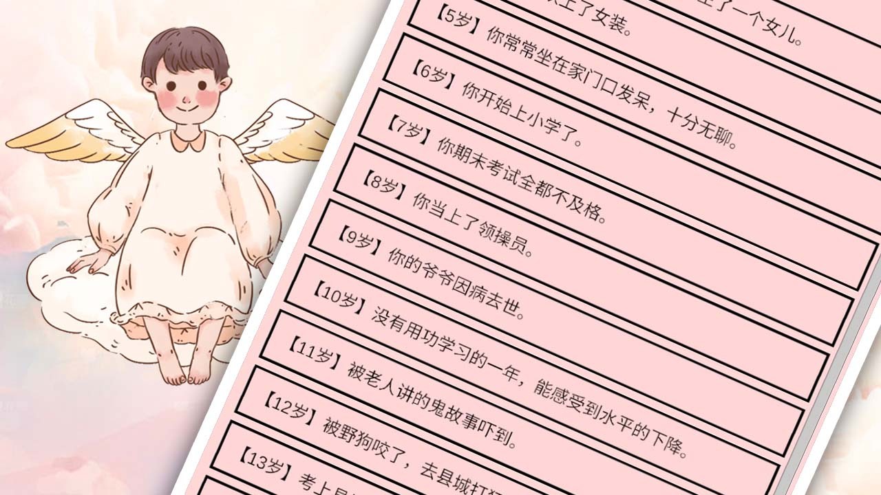 1.游戏从人物的出生开始,玩家可以选择性别、家庭背景等,从而影响后续的人生经历。