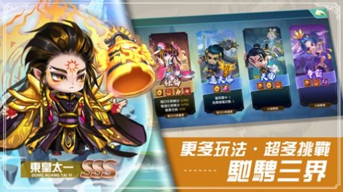 2.游戏中的角色形象都是以Q萌风格呈现,各种神仙妖怪都有着独特的个性和技能,自由对抗和收集。