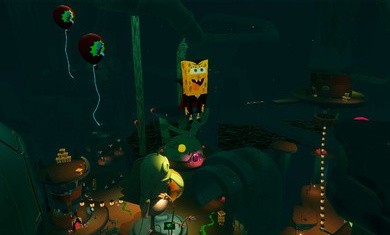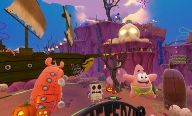 在流程方面,本作不再像之前需要收集金锅铲,解锁新地区的探索方式。而是需要按照线性的流程,前往7个与众不同的箱庭世界。而在这箱庭世界中,收集不再是主要目标,主题式的愿望世界所带来的剧情体验和关卡设计才是本作最主要的核心乐趣。不论是到西部世界的水母田,还是回到中世纪或史前时代,这次不同于前作的单人冒险,派大星将会一路伴随我们,两搭档之间的逗趣搭配便是乐趣所在。
