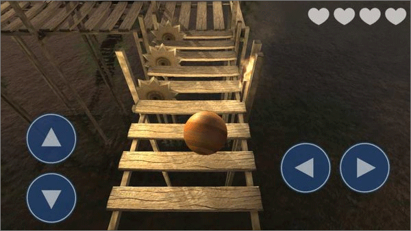 6、游戏开始时一共有5次机会,若球不小心掉入水中,或是落入陷阱时将会被扣除一个爱心,当5个爱心全部扣除时,游戏结束需重头再来
