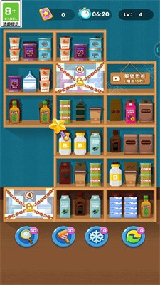 2.各种关卡随心选择,随着关卡的解锁,关卡的难度会逐渐增加,货柜和商品的数量也会增多,让你眼花缭乱。
