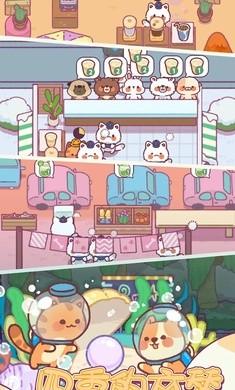 1.可爱的猫猫为主角,经营一家美食小店。猫猫的表情丰富,动作可爱,成为整个游戏的治愈代表。