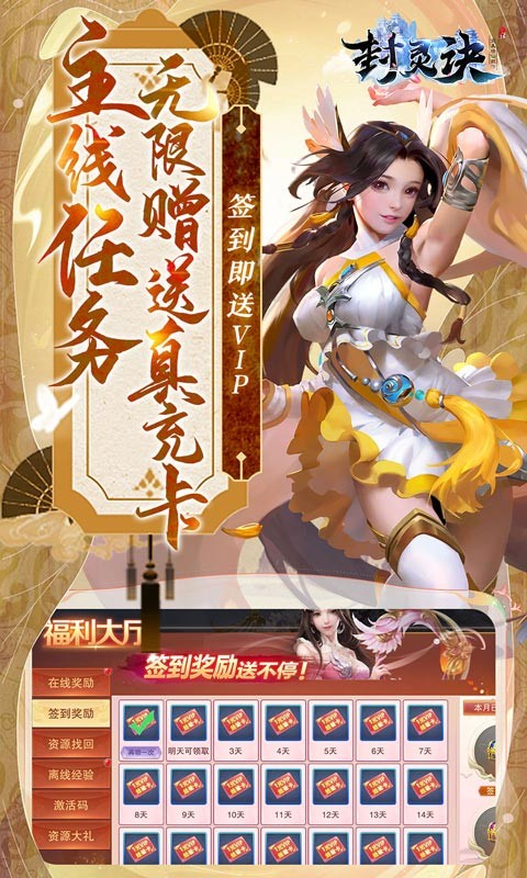 封灵诀修仙爽玩0.1折是一款3D玄幻仙侠手游,在封灵诀修仙爽玩0.1折中,有丰富的PVP对战模式,竞技PK乐趣十足,完成主线任务还有无限充值卡可以领,签到就能领VIP,打BOSS还能掉落各种装备,登录就送资质丹