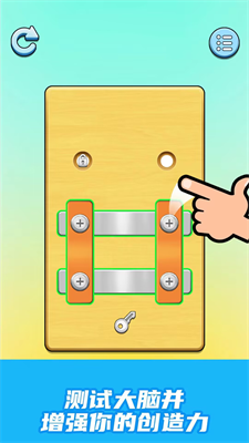 1.选择关卡进行烧脑挑战,先观察关卡中螺丝的分布,一步步解开螺丝谜题,顺利完成挑战,解锁新的内容。