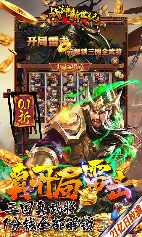 2、【0.1折】超强开局,1分钱直接解锁三国全武将;