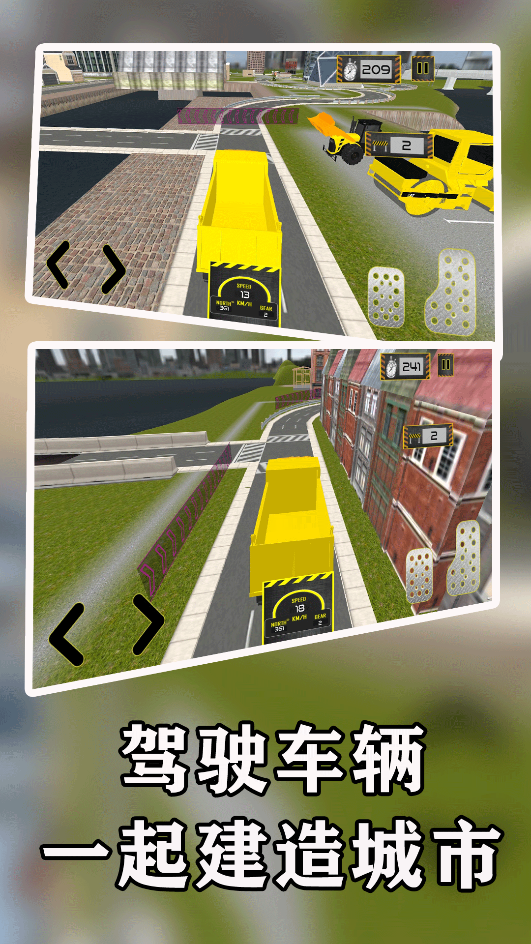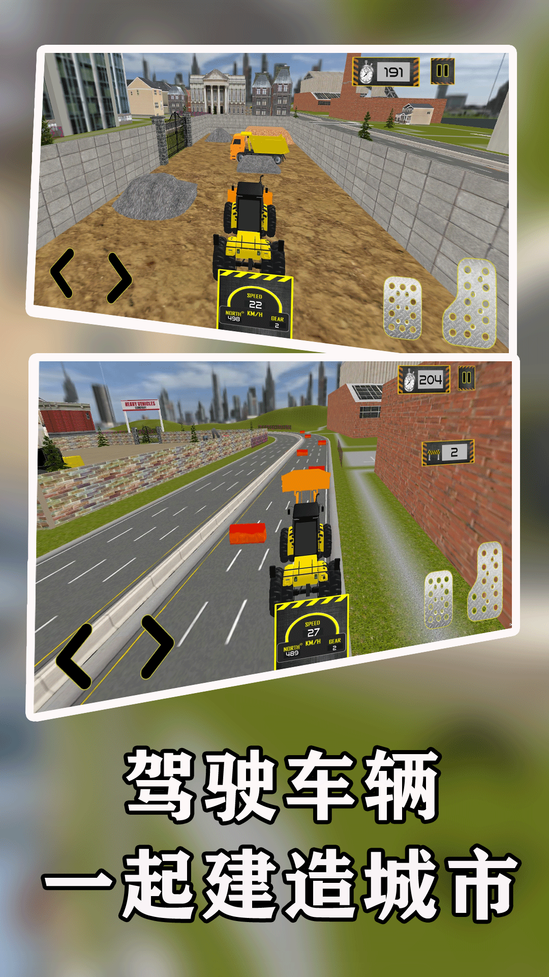 2.驾驶各种真实存在的工程车辆,如挖掘机、推土机、起重机等,熟练操作,建设城市。