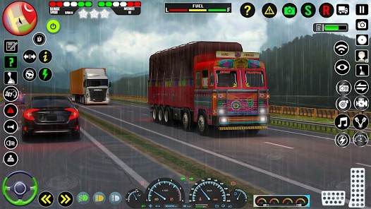 1、驾驶卡车在不同的道路和天气条件下运输货物并完成游戏中的任务。