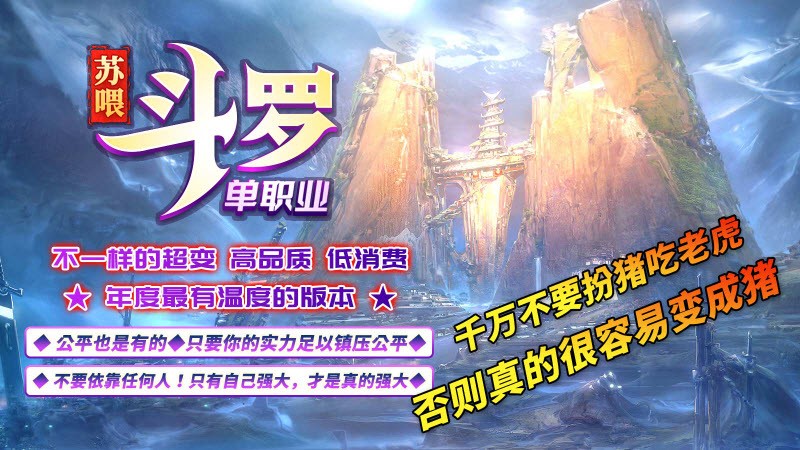 苏喂斗罗单职业是一款以1.85版本为基础的单职业传奇游戏,苏喂斗罗单职业致敬最经典的传奇时代。在这个充满热血和冒险的世界中,玩家将踏上一段重温经典的传奇之旅,挑战强大的怪物,寻找传说中的珍宝,感受刀刀暴击的爽快。