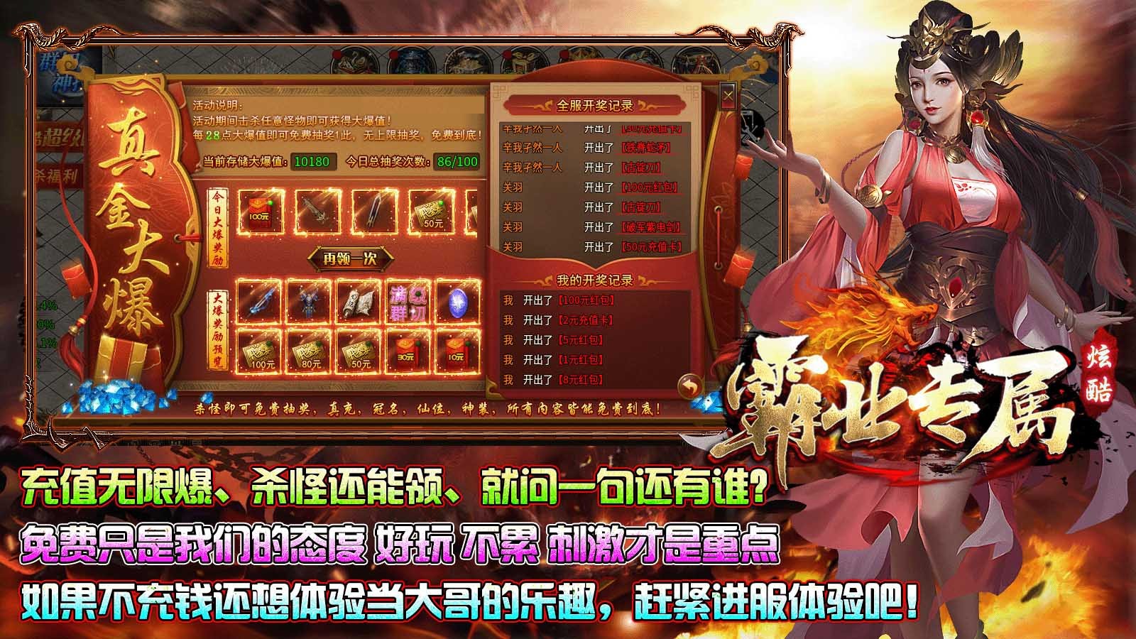 5. 全服首爆、个人首爆、官方回收,均可获得海量元宝、灵符以及真充卡,不限时时间!100w的首杀首爆充值,让你爽到起飞,爽到爆炸!