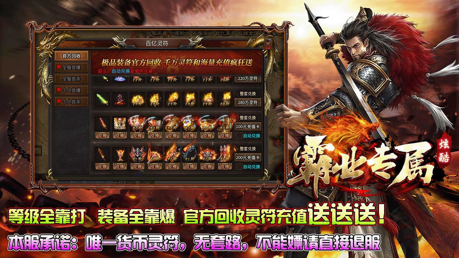 3.等级全靠打,装备全靠爆,官方回收灵符充值,唯一货币灵符