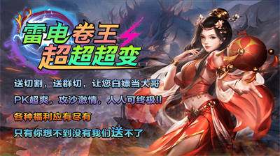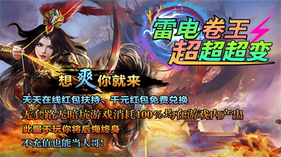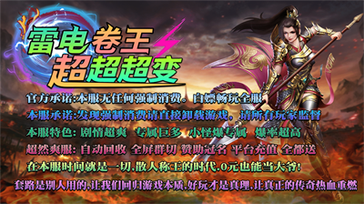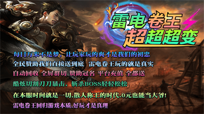 雷电卷王超超超变是一款1.95无限刀传奇手游,上线送送送,散人逆袭土豪,什么都可以通过打怪得到,激情爽爽爽,白嫖无敌。在雷电卷王超超超变中,再现当年传奇的画面感和热血激情,让你重温曾经的回忆。