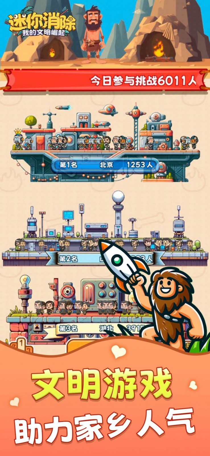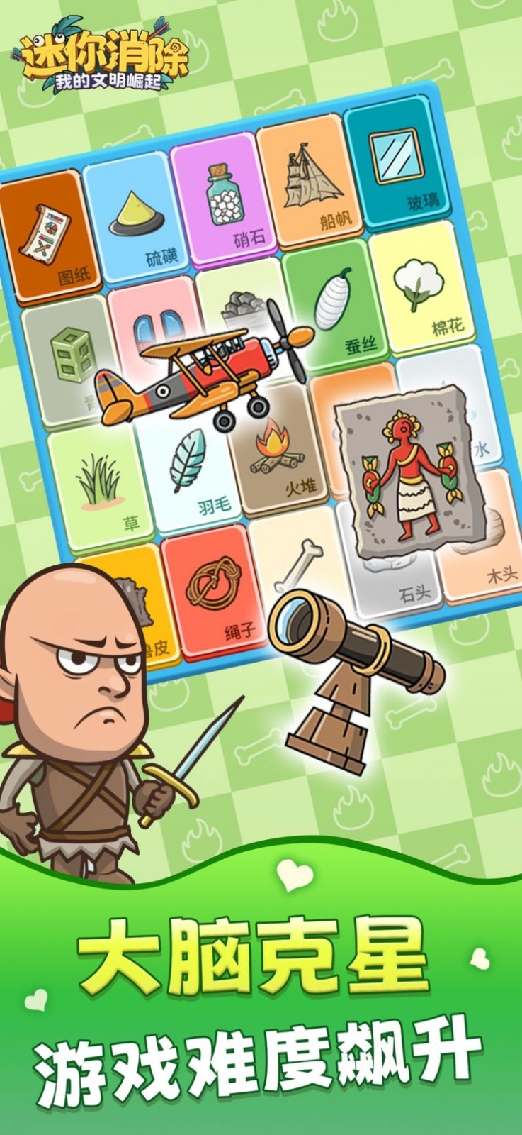 迷你消除我的文明崛起游戏是一款卡通策略消除手机游戏,在迷你消除我的文明崛起游戏内收集各种资源,开启我们的创造之旅,卡通的游戏画面风格,收集更多的资源,开启我们的文明崛起,一步步的合成各种物品,不断的推动我们文明的发展!