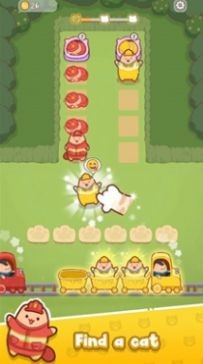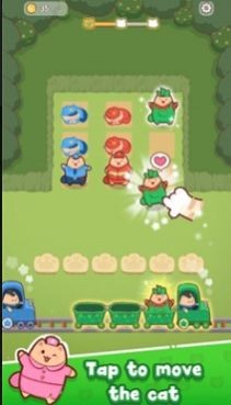 1. 在关卡中找到三个相同小猫放入等待区,三个相同的猫咪可以乘坐火车离开