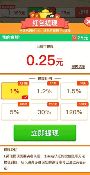 2.每个级别均可领取相应的红包奖励,感兴趣的玩家赶紧一起玩游戏领取红包吧!