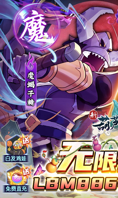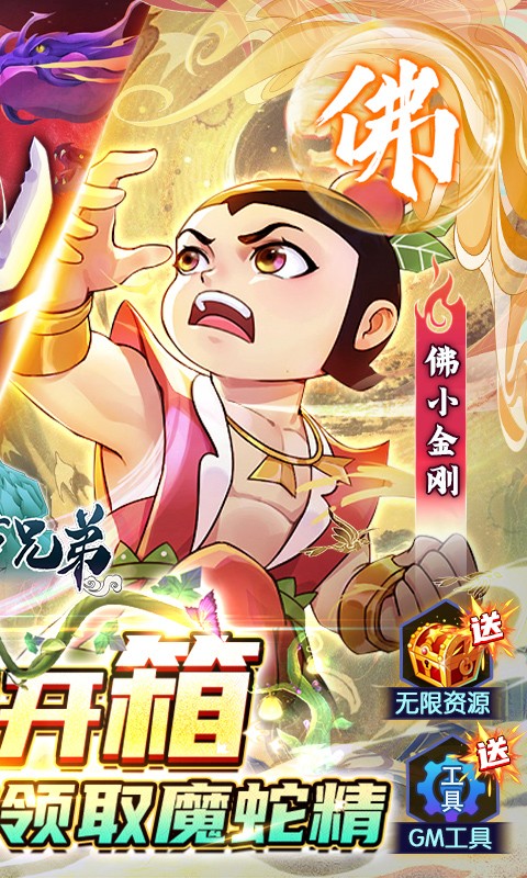 新葫芦兄弟送魔蛇无限开箱是葫芦娃正版手游,在新葫芦兄弟送魔蛇无限开箱中,玩家上线就送T0伙伴七娃,还送满级VIP10,GM工具免费激活,余额免费刷充,无限资源、首充、基金全都白嫖,登录还送1000元充值卡
