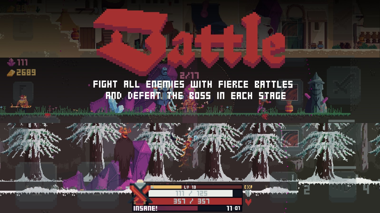 2.通过购买物品来战斗和增强自己,在感觉强大后,玩家可以挑战BOSS