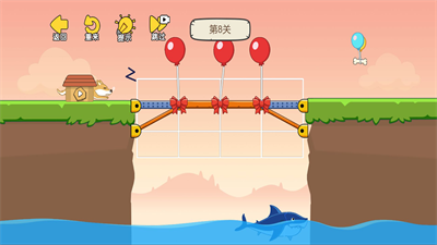 1.玩家需要根据关卡的要求,使用手指在屏幕上画出桥梁,让狗狗顺利通过各种障碍,抵达终点,吃到骨头。