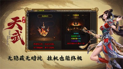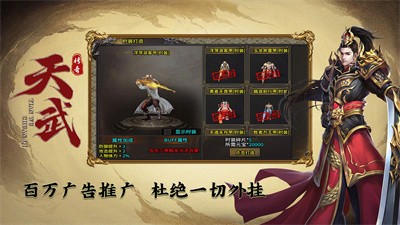 天武传奇是一款1.80单职业传奇手游,元宝装备保值,长久耐玩,散人好混,绿色纯净,公平公正,天武品牌,值得信赖。在天武传奇中,不花一分钱可白嫖到终极,散人也能逆袭当大佬。