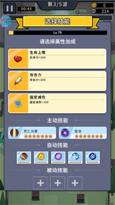 1.进入关卡开启割草冒险挑战,击败敌人,获得一定的经验进行升级,获取不同的属性加成,提升你的战斗能力。